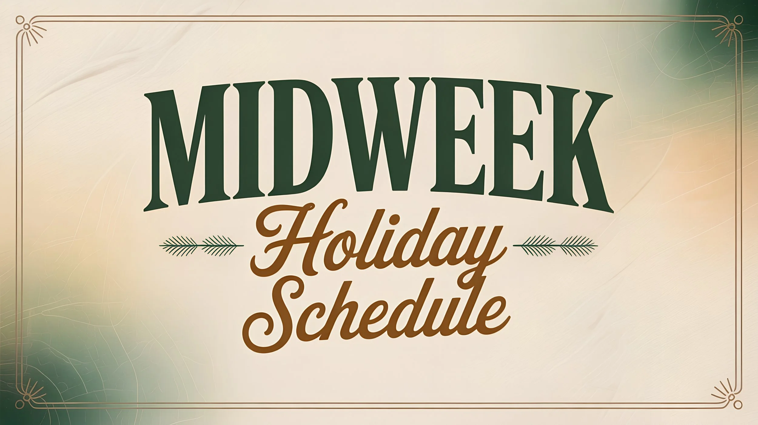 WEDNESDAY NIGHT MIDWEEK SERVICE AND GROUPS ARE CANCELED FOR HOLIDAY EVENTS NOVEMBER 26TH - DECEMBER 31ST. JOIN US AT OUT OF OUR OTHER HOLIDAY GATHERINGS!